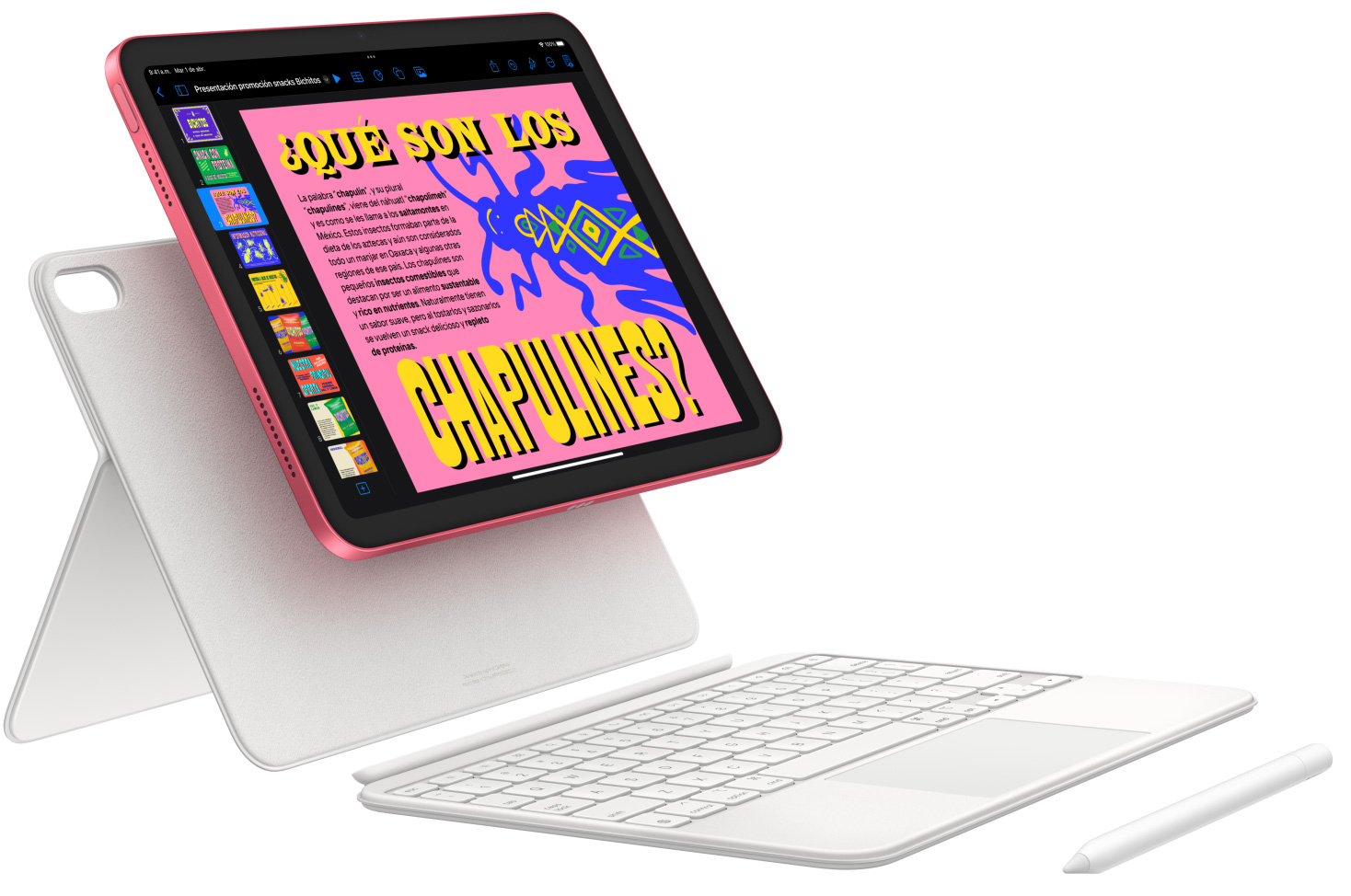 Sácale punta a tu creatividad con el Apple Pencil y el Magic Keyboard Folio. Protege tus obras de arte por ambos lados con un Smart Folio. Y usa el puerto USB-C para conectar discos duros, bases dock, monitores y mucho más.2