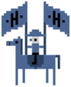 Pixel art of a person and horse siting at a table, Hermès Armbänder: Faubourg Party in Bleu Nuit, Scub’H Diving in Gris Titane, Kilim Single Tour in Bordeaux, Grand H in Satiné, Twill Jump Attelage Single Tour in Gris Meyer/Rouge Grenat, Toile H Single Tour in Noir/Écru Pixel art of a person and horse siting at a table, Hermès bands: bleu nuit Faubourg Party, gris titane Scub’H Diving, bordeaux Kilim Single Tour