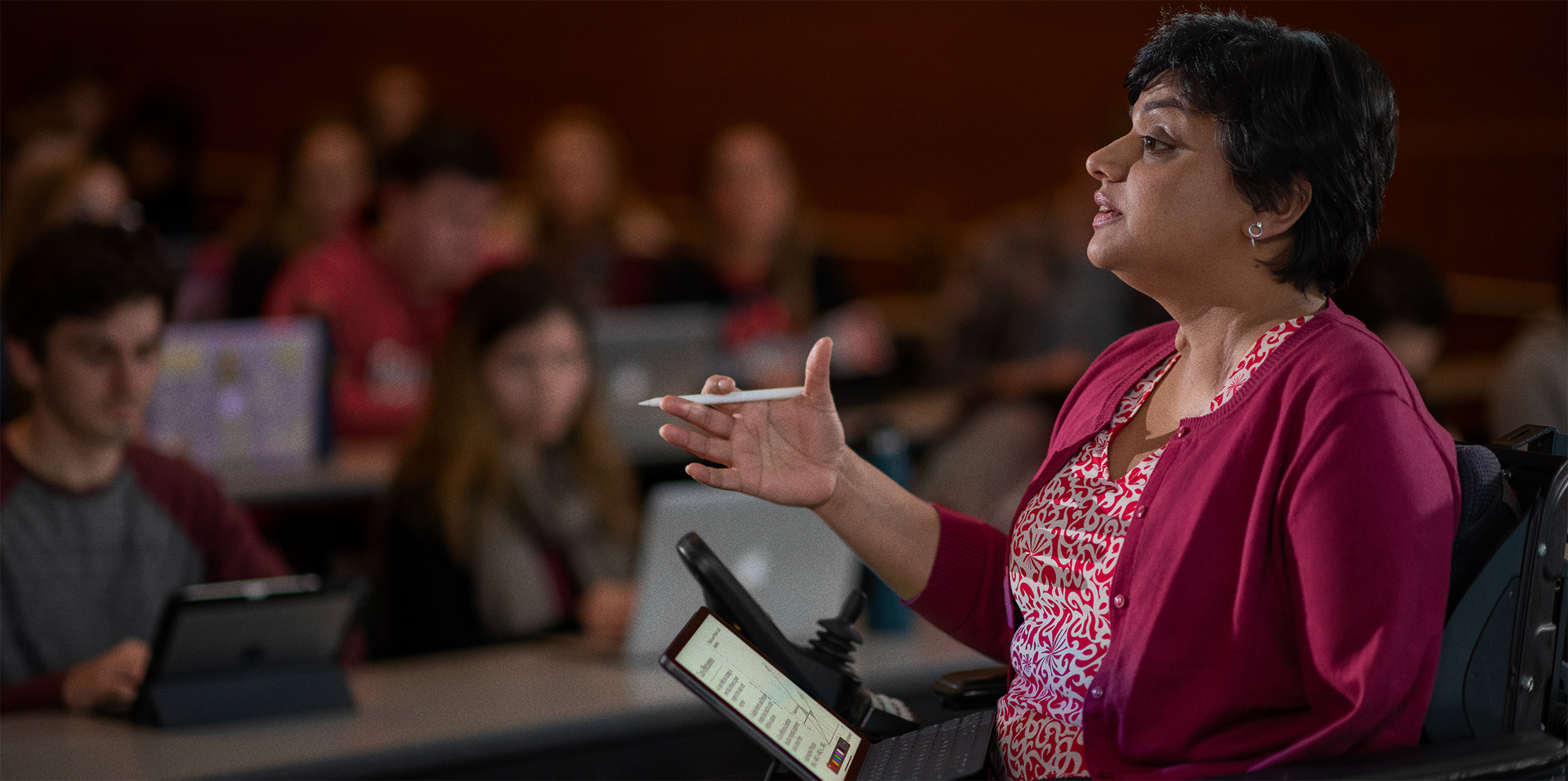 Apple technology turns her lecture hall into a dynamic think tank. With built-in accessibility features, like Dictation and AssistiveTouch, iPad Pro empowers Dr. Gopalakrishnan to engage and illustrate content in real time, while Apple Pencil gives her an all-in-one interactive tool to sketch, draw, and mark up content.