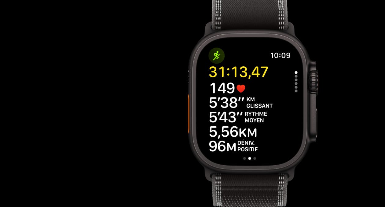 L’Apple Watch Ultra 3 utilise le cardiofréquencemètre optique et des algorithmes avancés pour surveiller votre fréquence cardiaque tout au long de la journée. Avec l’app Fréquence cardiaque, recevez une notification en cas de rythme cardiaque inhabituellement élevé ou faible18.
