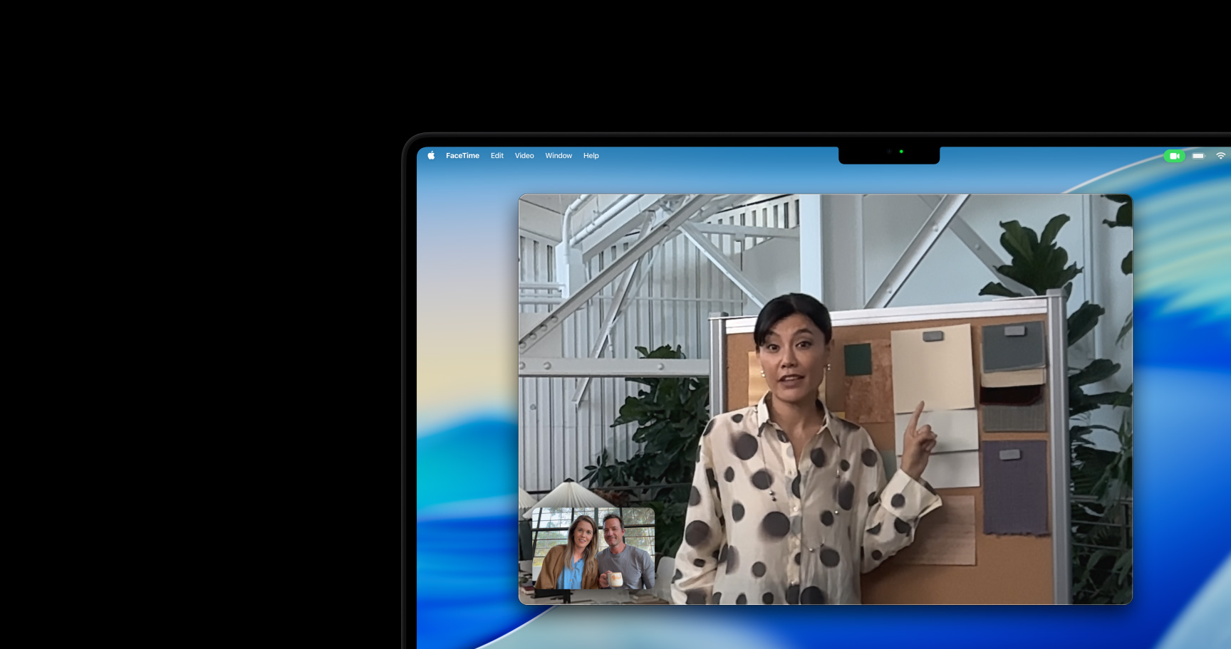 Center Stage menjaga Anda selalu di dalam frame selama panggilan video, meskipun banyak bergerak atau lebih banyak orang masuk dalam frame.