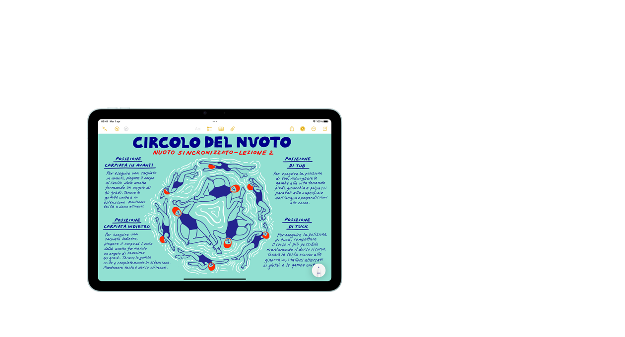 Disegna, dipingi, prendi appunti: Apple Pencil rende tutto più intuitivo, più facile, quasi magico. È precisa al pixel, ha una bassa latenza, cambia il tratto in base all’inclinazione. Mentre la usi puoi appoggiare la mano sullo schermo, proprio come faresti su un foglio. E Apple Pencil Pro ti aiuta a dare vita alle tue idee con funzioni ancora più evolute.3