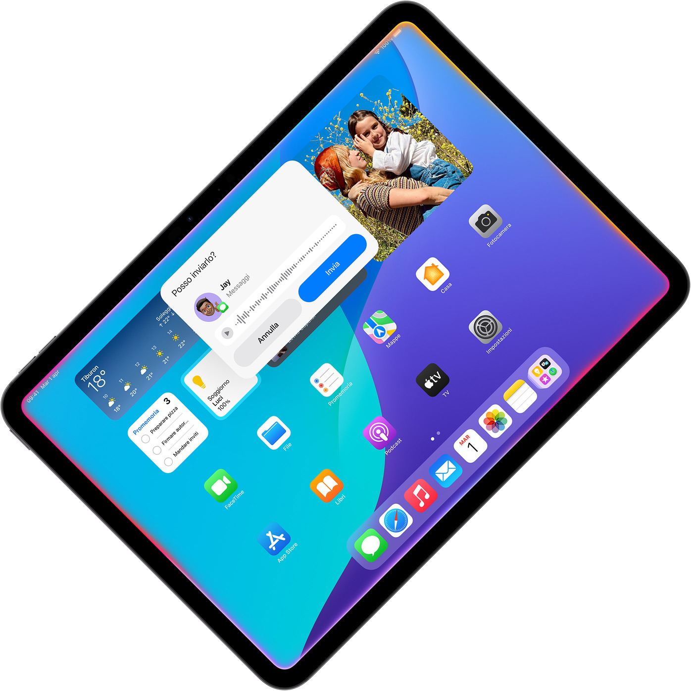 Fatti aiutare ai fornelli. Ora puoi impostare il timer del forno, calcolare gli ingredienti e chiamare tutti a tavola con l’interfono su HomePod, tenendo lontano il tuo iPad dagli schizzi di sugo.