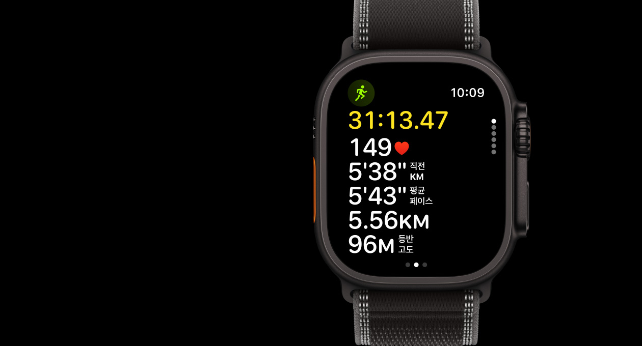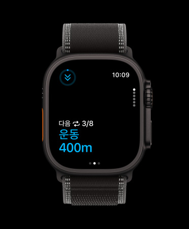 Ultra 3의 하이킹 운동에서는 페이스, 거리, 등반 고도, 소모한 칼로리를 확인할 수 있습니다. 당신이 얼마나 높이 등반했는지 실시간으로 알 수 있고, 운동 후엔 총 등반 고도를 확인할 수 있죠. 하늘 끝까지 올라 볼까요?