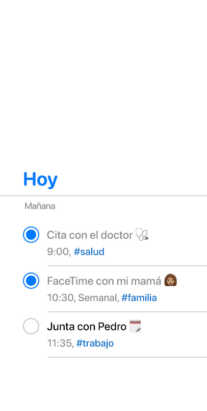 hasta las distintas tareas de un proyecto. Crea recordatorios rápidos con Siri y personaliza tus listas y alertas con prácticas herramientas.