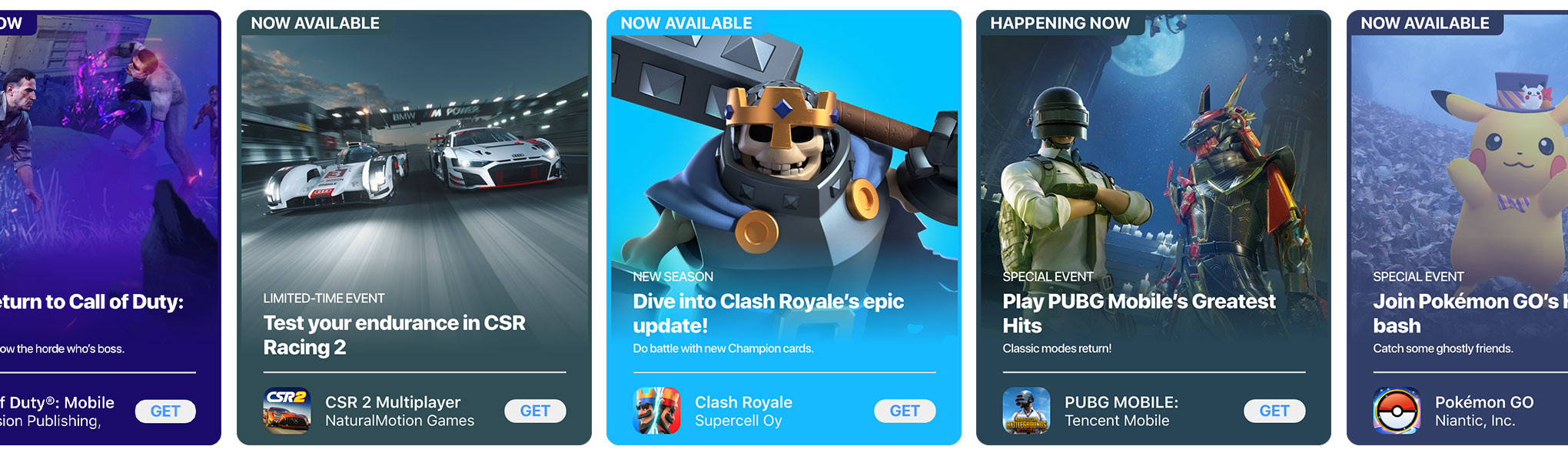 Discover events on the Today, Games, and Apps tabs on the App Store. Or find them via search and on app product pages.
